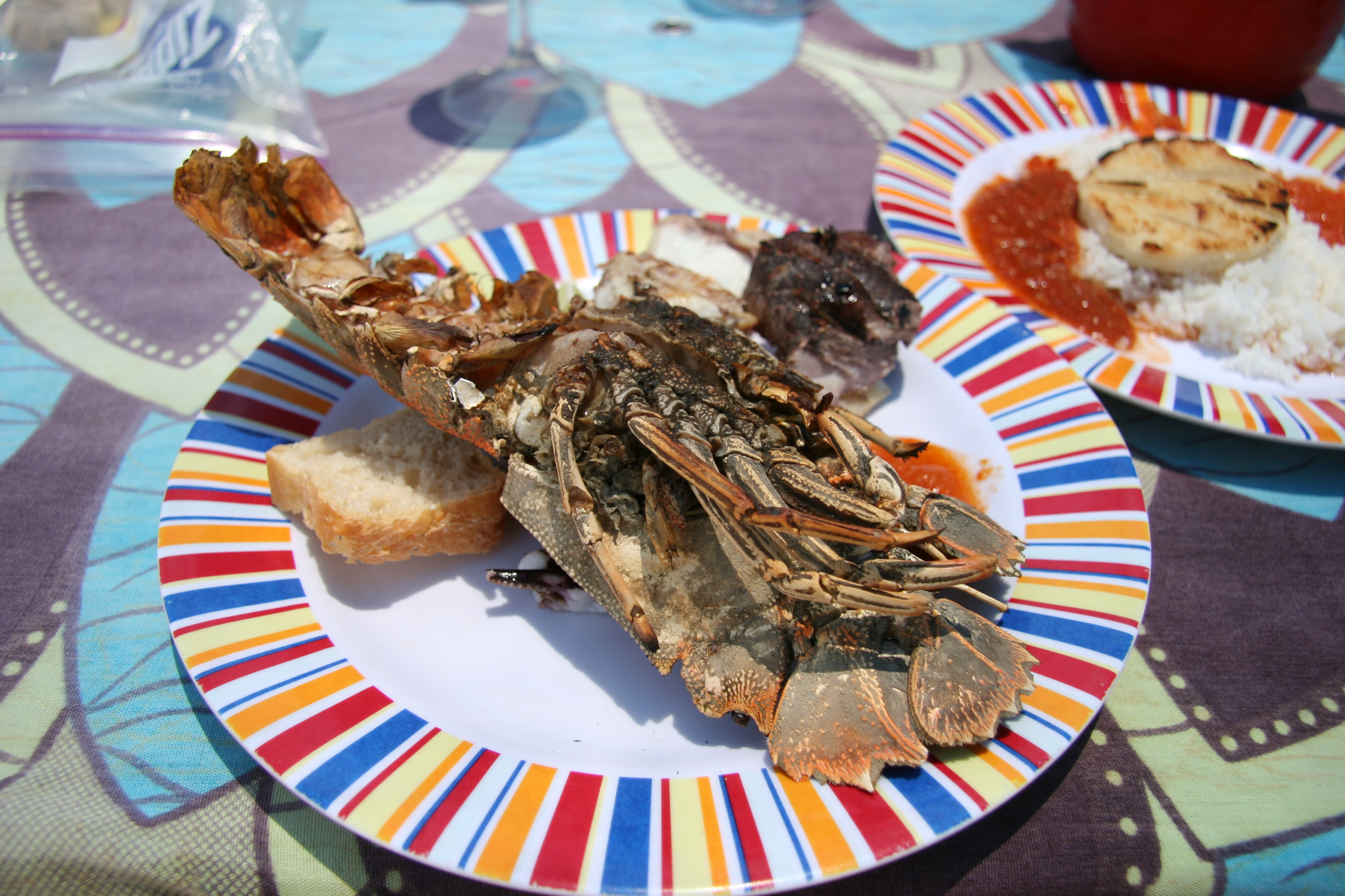 We spent the day yesterday boating and snorkeling off the southern coast of Zanzibar. We were in a dhow (a wooden boat with both a motor and a sail). We arrived at the launch site to find no facilities whatsoever and had to change into our suits in a somewhat secluded area behind some bushes. After boating at a leisurely pace, we stopped to snorkel for a while. The water was warm, the tropical fish plentiful, but the most amazing thing was the coral — so many species and more beautiful than I have ever seen before. We snorkeled for about 40 minutes then headed to a very small, uninhabited island to have lunch. When we climbed aboard after snorkeling, the crew gave each of us a fresh coconut with the top cut off so we could drink the water. It was very refreshing. Two tarp-shaded picnic tables were waiting for us on the beach, along with hibiscus juice, beer, and cooking seafood!! For lunch we had rice with two kinds of sauce, maze polenta cakes, bread, two kinds of fresh fish, calamari, and SLIPPER LOBSTER (all you could eat). For dessert, our guide produced a crate of tropical fruit and walked through each one, showing us how to cut it and eat it. We had jack fruit, mango, sugar cane, watermelon, and passion fruit. After playing in the water for a while, we headed to another snorkeling spot. We saw lots of fish and coral, plus a ray and sea turtle. In places the water was as warm as bath water from the sun. It was a long day and we were exhausted by the time we got back and were picked up for the hour drive back to the resort. We are now waiting for our ride to the airport in Stone Town and the beginning of our very long trip home, beginning with the 12-passenger Link Flight plane (one of four flights). We will be traveling for a total of 36 hours, but it will be well worth it. We look forward to the comforts of home and to seeing our families, friends, and beloved pets! Here we come clean streets, reliable internet, familiar foods, low humidity, decent toilet paper, hot water on demand, air conditioning, fast food and Starbucks, fresh veggies, supermarkets, fluffy towels, traffic that doesn’t resemble a losing game of Frogger, fly-less and bee-less jam, all the ice you want, no malaria threat, etc. etc. etc. I will click my heels together 3 times and repeat, “There’s no place like home.” “There’s no place like home.”…