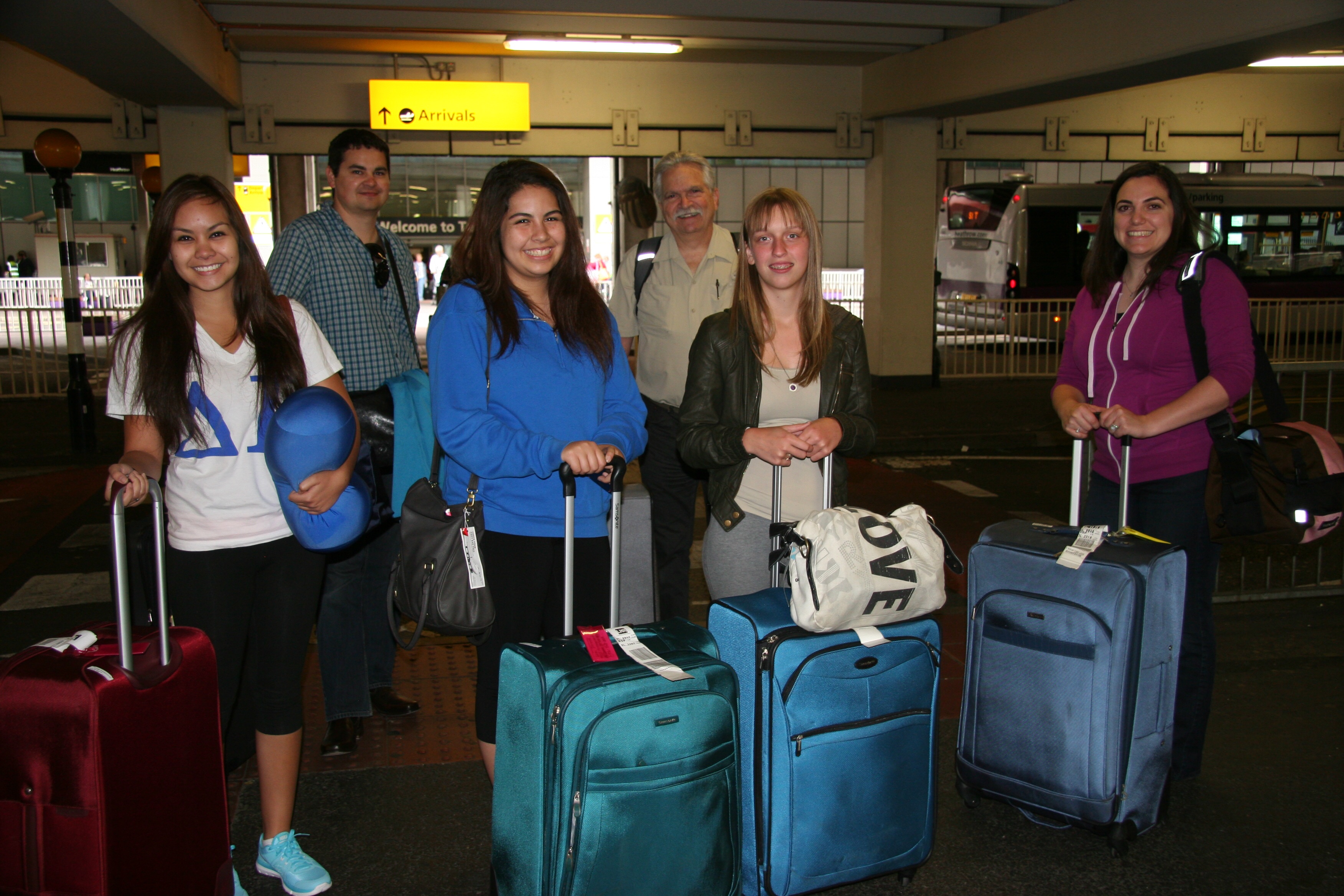 5:30 am taxi ride to the airport and off to Spain we go. It is a short flight and we arrive in Barcelona at 10:20 a.m. Finding two taxis is easy, so we are soon on our way to the Hotel 4 Barcelona. We immediately feel like we have traveled through time from the 19th Century to the 21st — how refreshing! Four lane highways, modern buildings, and traffic that respects the law and is not intent on mowing down pedestrians for sport. We are unable to check in and our rooms won’t be ready until 3 p.m. so we check our bags and head out to walk the streets for food and sights. We find a small cafe nearby and have tapas and drinks (I have my first Sangria – a favorite of mine – and it is delicious). We are very tired, but must kill some time, so after we eat, we walk to the nearby beach! Holy Moly, it’s the ocean! We come upon a beautiful beach and a deep blue ocean as far as the eye can see – Hello Barcelona, I Love You. There is a large walkway with people jogging, skating, bicycling and just enjoying the beautiful sunny day. It feels like Long Beach in SoCal. Even as tired as we are, it is a sight to see. We find a few concrete seats and lounges (surprisingly comfortable) and wait out the remaining time. We finally walk back to the hotel, get our rooms, rest, change and meet again to take the girls back to the beach. This time, they have bathing suits under their shorts and we get some beach towels from the Hotel and head back out. The girls lay on the beach, tanning themselves, while I relax at the Beach Bar in the shade. We have dinner at the restaurant ManGo, and order Paella, the delicious Spanish dish with rice and veggies or meat served in a big skillet for 2 or more. Everyone is a bit burned out, so we agree that we are going to take it easy in Barcelona. Michael gets Hop On/Hop Off tickets so we can ride around and see some sites. The only scheduled stop is Gaudi’s Sagrada Familia (Sacred or Holy Family), a large unfinished church, that was started in 1883 and Gaudi took over construction in 1884. It is an amazing architectural sight and includes several different types of staircases and many stained glass windows. We then split up as the girls would like to do some shopping. We find a street of clothing stores and everyone tries on clothes – Hailey and Brittney find something to buy, but Lexi has no luck. Next, we go to La Rambla (a huge open market) and are greeted by the sight of fruits, vegetables, meats, breads, fish, and seafood – what an incredible display of edible treats. By now it is late and we start back to meet the others for dinner. The next day, we head once again to La Rambla, as we just didn’t get enough the afternoon before. Afterward, I take the girls back to the beach, where they enjoy the sand and sun and I enjoy another Sangria (I am in Spain, after all). We get up the next morning and go to the train station heading for our final destination — Bilbao, in the Basque Country. The trip takes 6 hours; fortunately, it is a very comfortable train and the countryside is beautiful. We had no idea that the Basque Country was covered in such lush green mountains. We arrive at the Sercotal Hotel Gran Bilbao. It is a beautiful hotel, with the largest rooms and bathrooms that we have had to date. The only downside is that we are not in the center of the city, so we have to take taxis to get anywhere at all. Very few people here speak fluent English; as a result, we are extremely grateful for the Spanish that Michael and Amanda are able to recall, which enables us to communicate everywhere we go! We spend the first morning at the Guggenhein Museum – a modern art museum that some appreciated more than others. We had a nice lunch and then walked around Bilbao and came upon the Basque Musuem! We had to wait until 4 p.m. to visit, as we arrived during Siesta. There are four floors of Basque History and it is fun to see the Echeverria heritage. We taxi back to the hotel for dinner there and then retire to our rooms for much needed rest. Our final day, we venture once again for a last trip on the metro to find a bridge that our taxi driver told us about the evening before. We have to take a taxi to the metro station, then the metro to a few blocks from the bridge, then walk to the bridge, which is on the water front. It is really a very nice city, with many beautiful buildings. The area is clean and the people friendly. The bridge is unbelievable! It carries a ferry on cables from one side of the river to the other. It can hold up to six cars and many people. We discover that you can ride an elevator to the top of the bridge and walk across. A treat we cannot pass up! We then go walking through town looking for a restuarant. We happen upon an Italian restaurant (yeah, I know, we’re in Spain; but when you have 7 people to seat, you can’t be picky)! Turns out this food is phenomenal. We each order a pasta dish and are surprised by the amounts they serve. We have been used to getting fairly small portions in Europe — not a complaint, just the way it is; as America has a tendency to serve really large portions. We comment how these servings seem more like American servings. In fact, none of us can finish our food and we all agree we will take our leftovers back to the hotel and eat them for dinner; saving ourselves another trip out in the evening. Funny thing is, when we are looking for the restroom; I notice a table with 4 people and they have 2 bowls of pasta and they are spooning servings into separate plates they each have in front of them. I realize that what we have done is order a family size plate of pasta for each of us — the waiter must have thought we were such pigs!! When I go back and inform everyone what we have done, we all have a very good laugh. Someone observes that at least we didn’t eat it all.