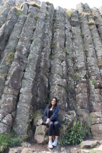At the end of the taxi tour, our driver dropped us off at the Titanic Museum so we could meet up with our bus.  We had a few extra minutes to check out the gift shop and get some pictures.  Then, we all boarded the bus and headed off to Giant’s Causeway- a geological phenomenon.  Geologists say it was formed from the cooling and shrinking of successive lava flows over 60 million years ago.  But Giant’s Causeway is also steeped in myth and legend — carved from the coast by the mighty giant, Finn McCool, who left behind an ancient home full of folklore.  Local people believe that between the hexagons, the mythical features carved out in the rocks and the tumbling sea, there’s real magic!