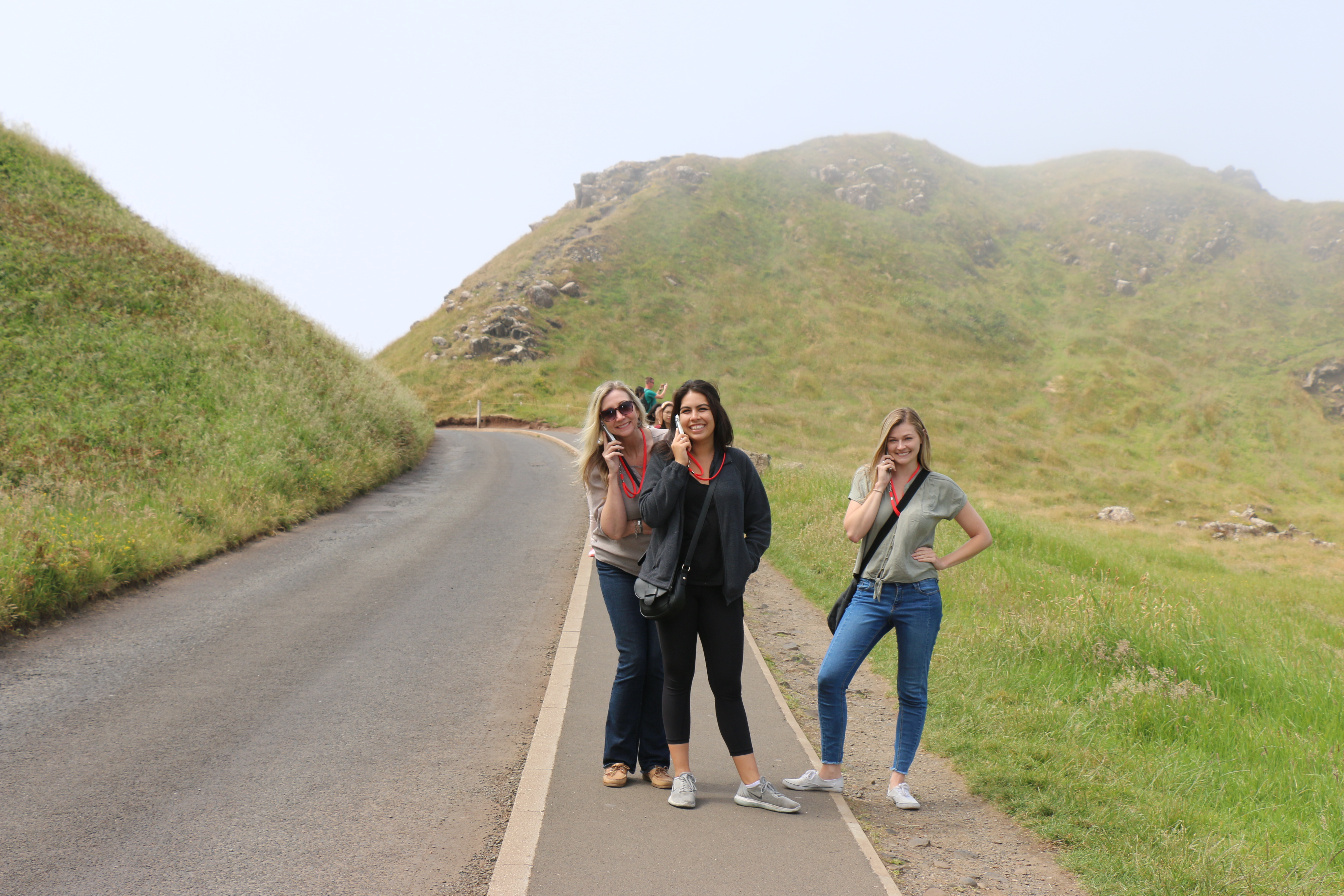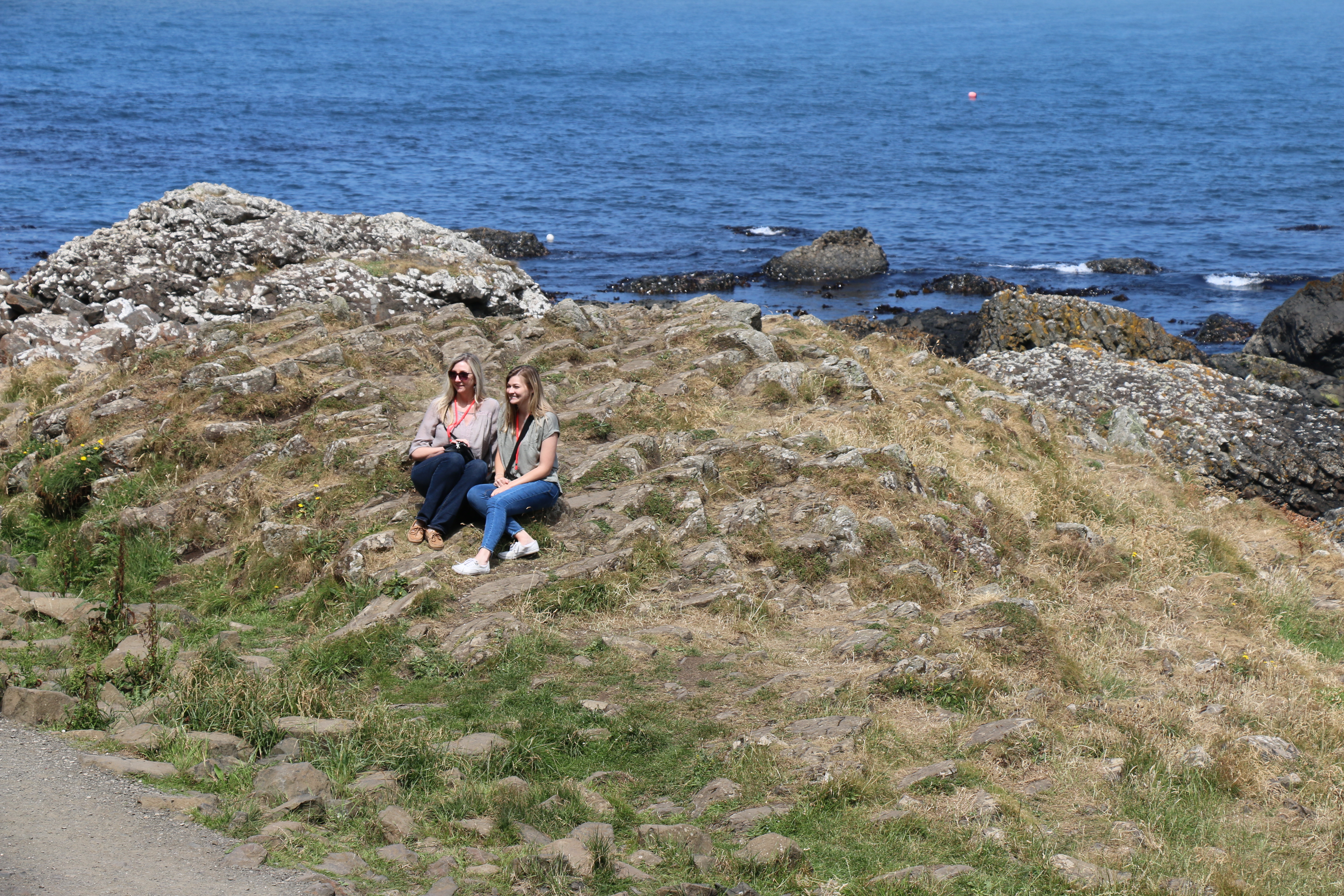 The girls listening to the audio guide we got as part of our Giant’s Causeway self-guided tour.