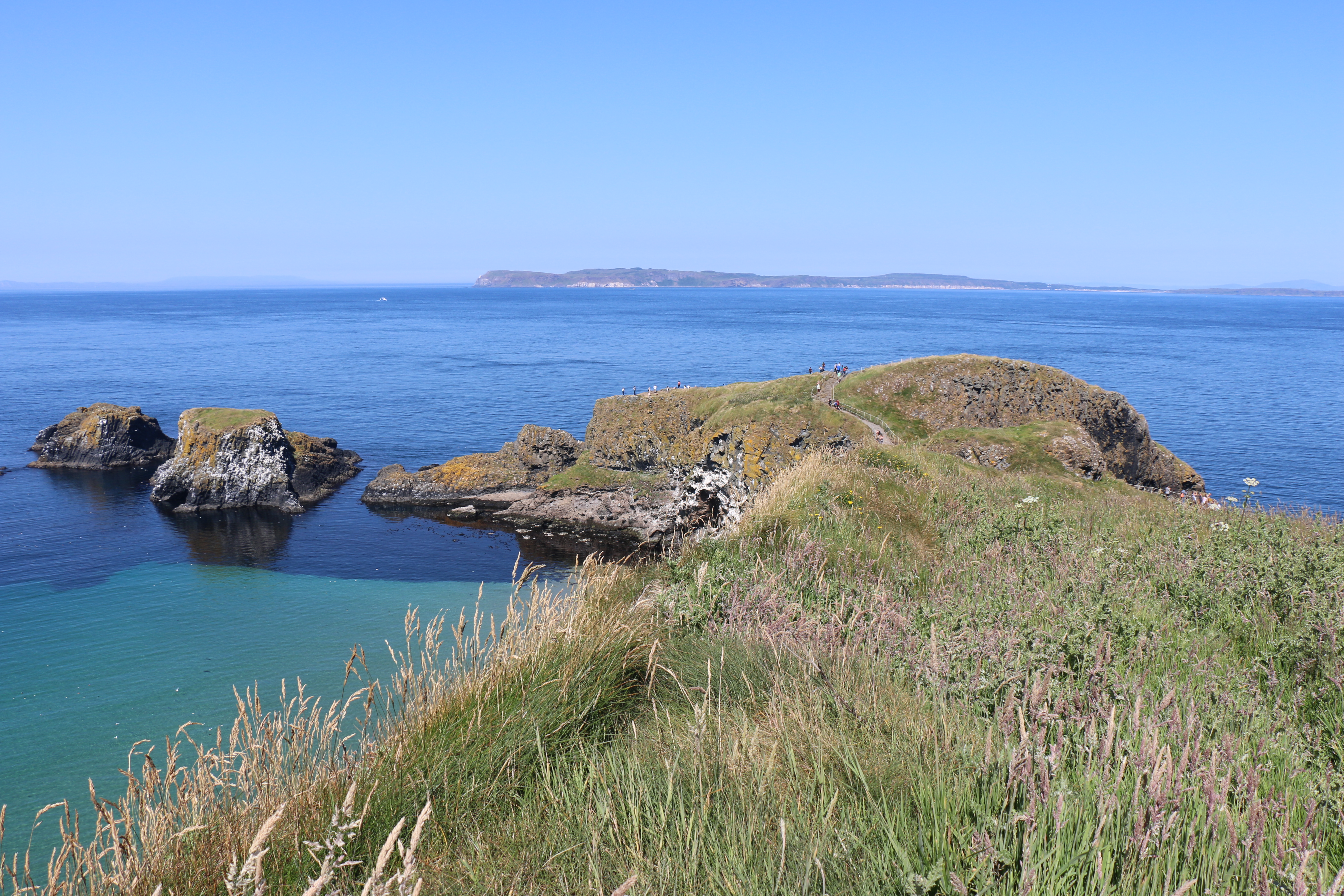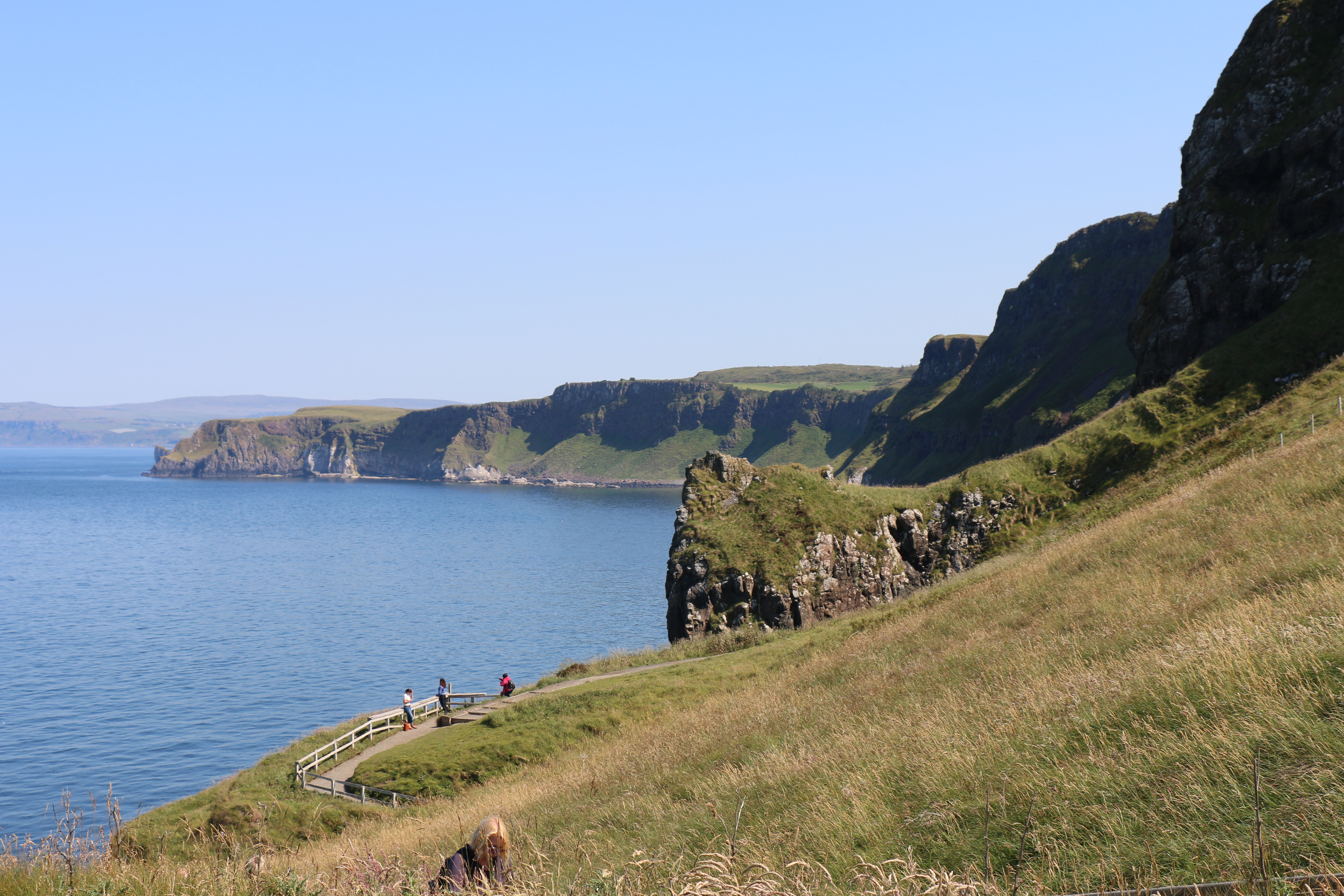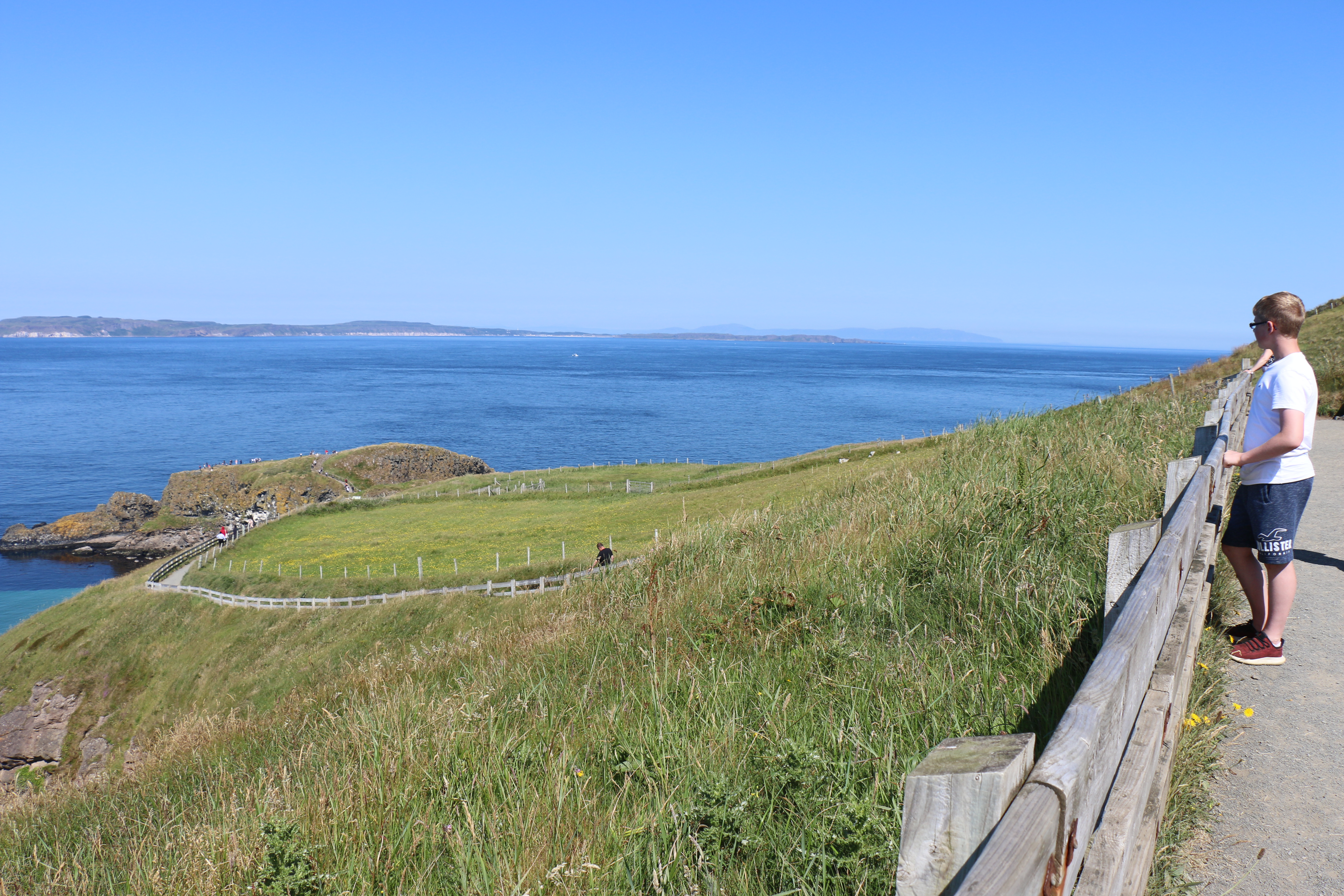 After departing Giant’s Causeway, we headed to our last stop — the rope bridge.  The four of us started down the very hilly path and after 1 hill and 1 very steep rock stairway (with another steeper one to go), I turned around and went back.  I knew I could make it down, but was pretty sure I wouldn’t make it back up!  But KarenAnn, Kenzie, and Lexi made it all the way and crossed the infamous rope bridge!  This area is also noted for having scenes from Game of Thrones filmed here.