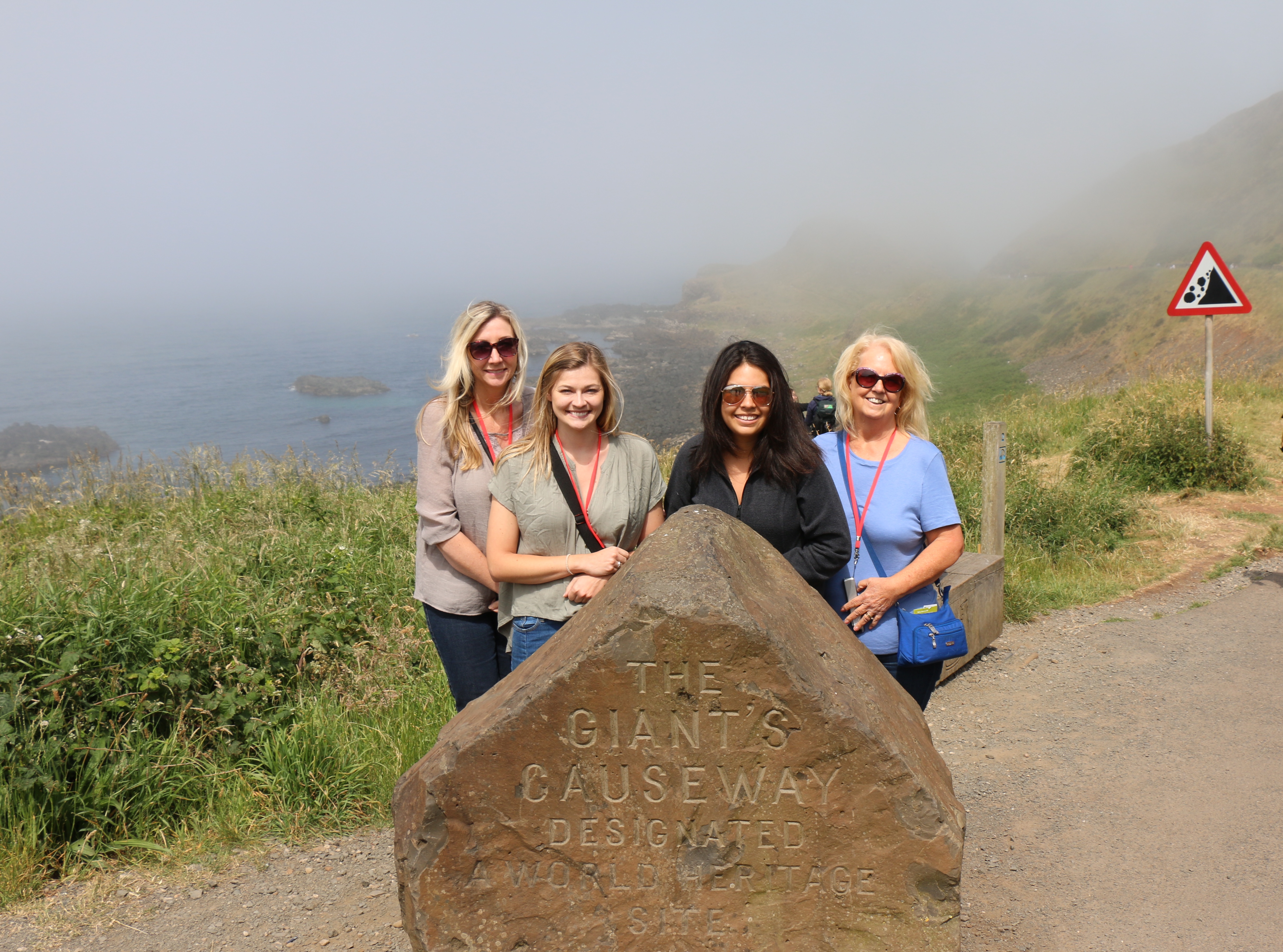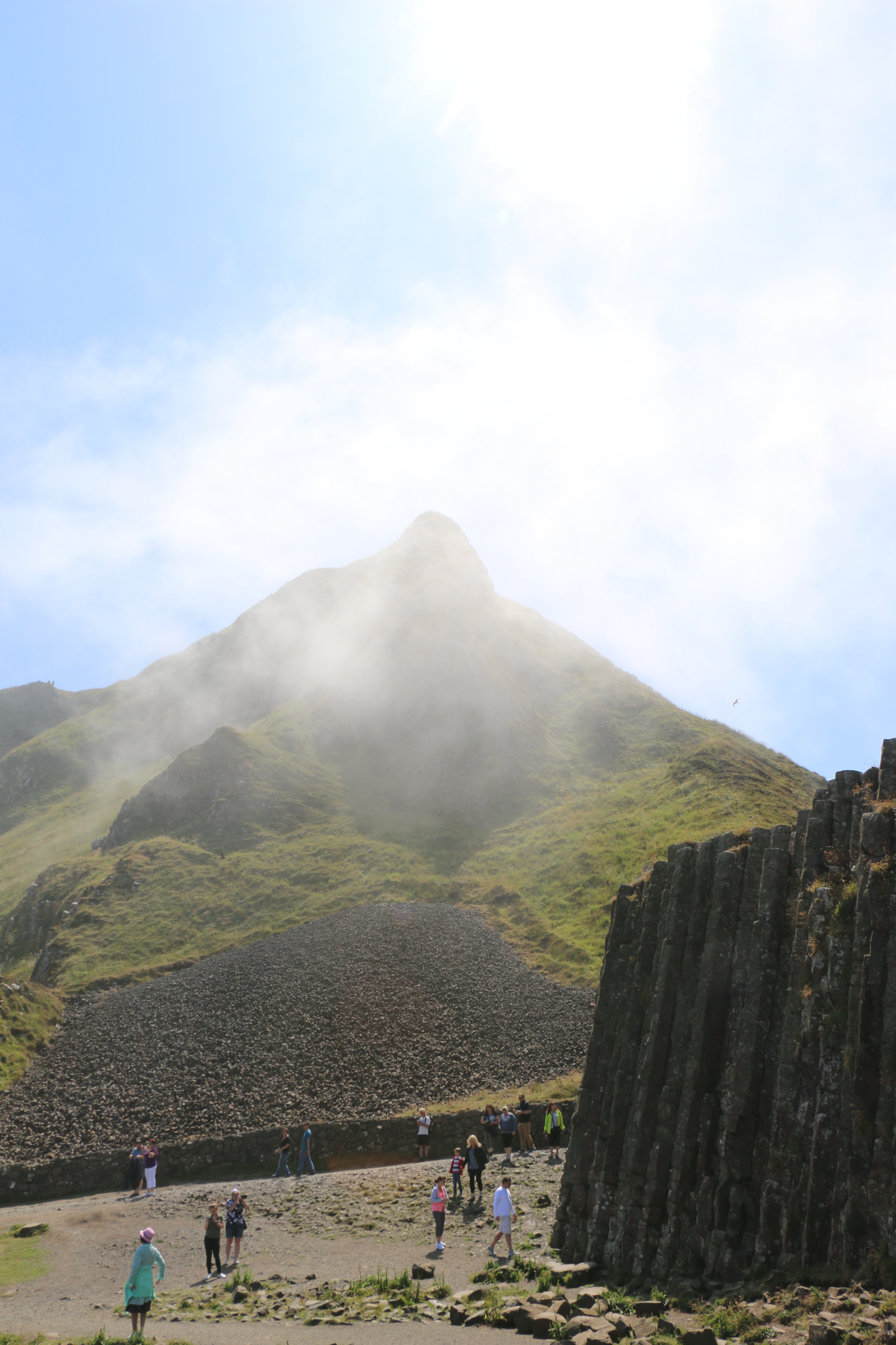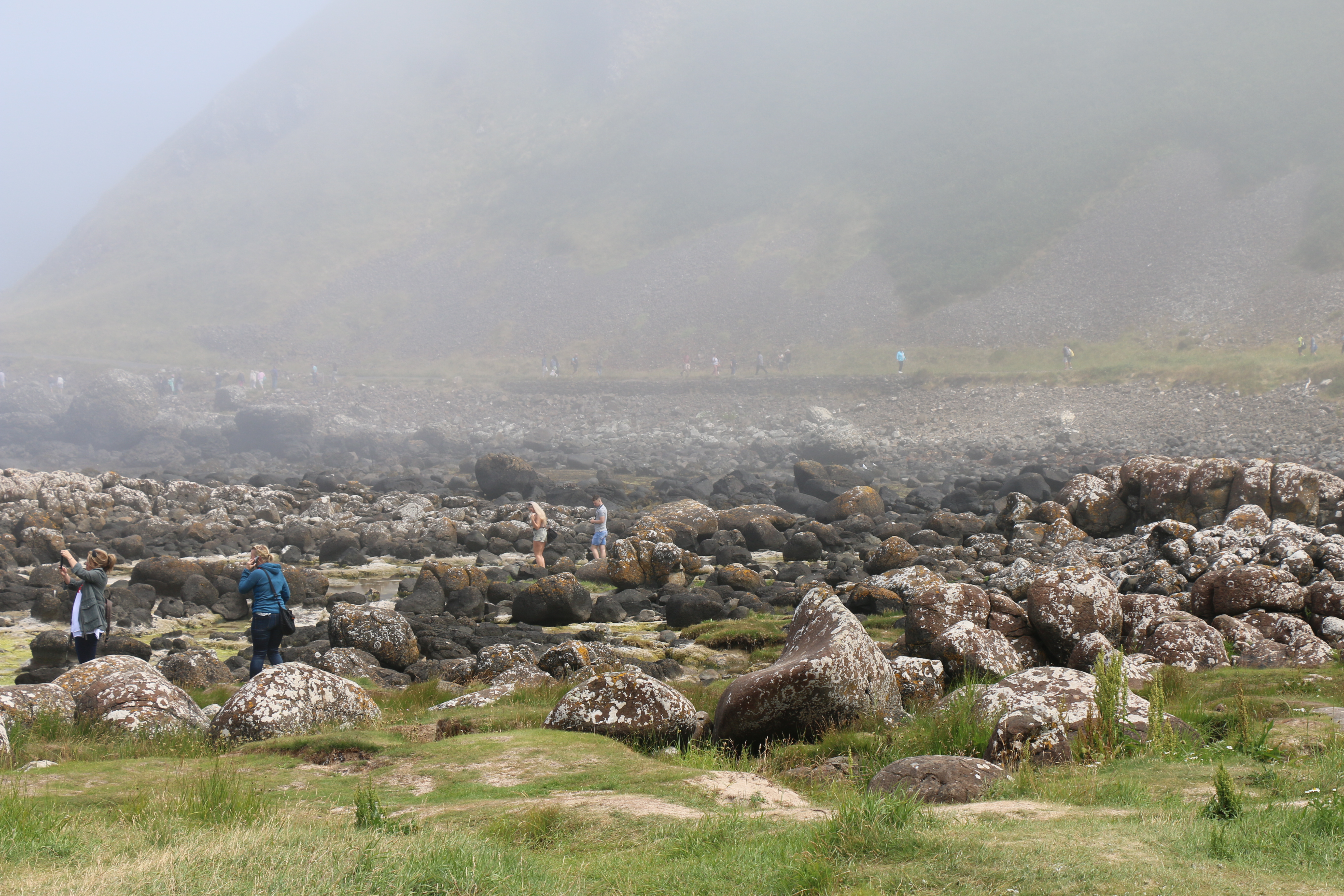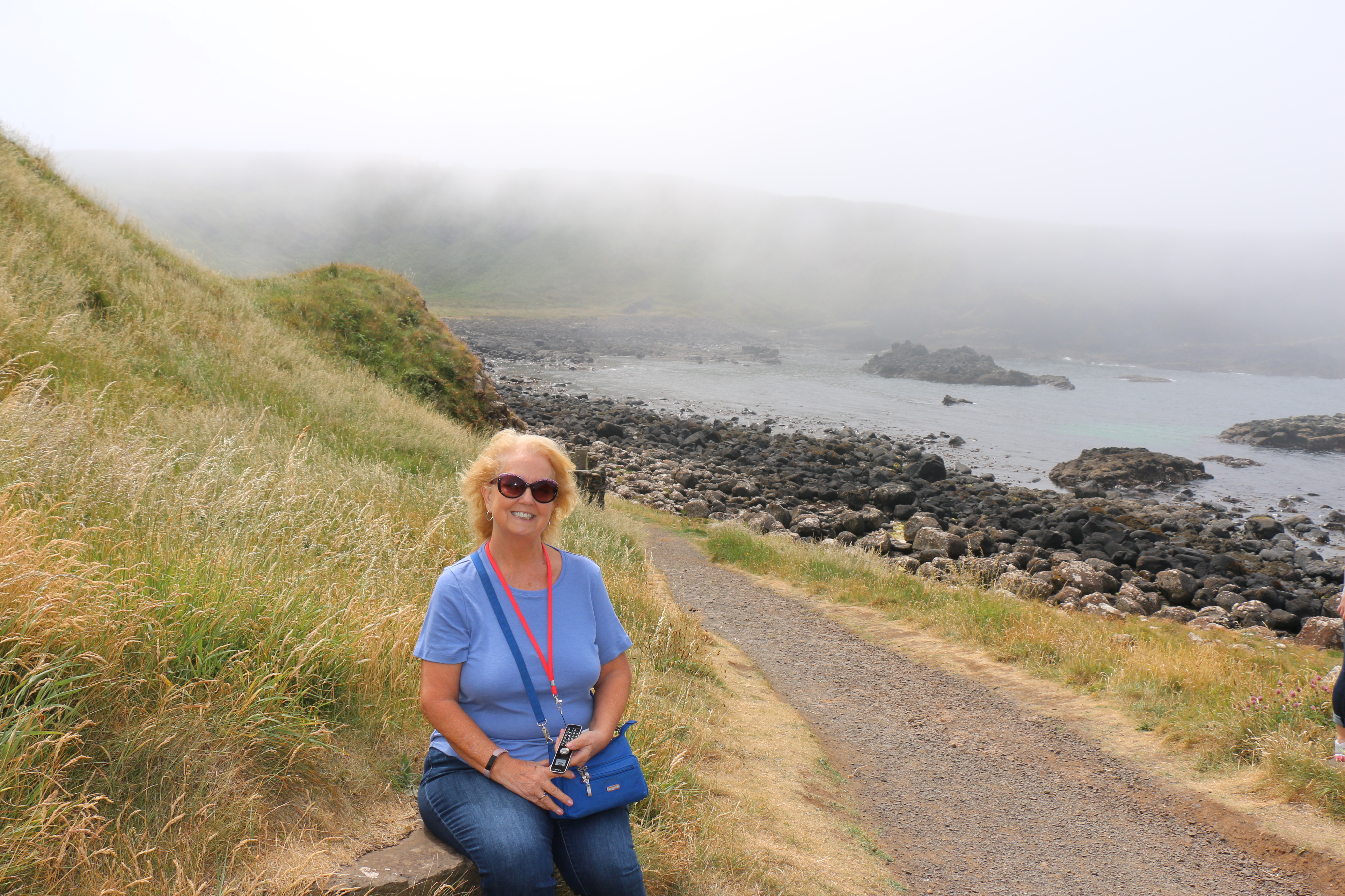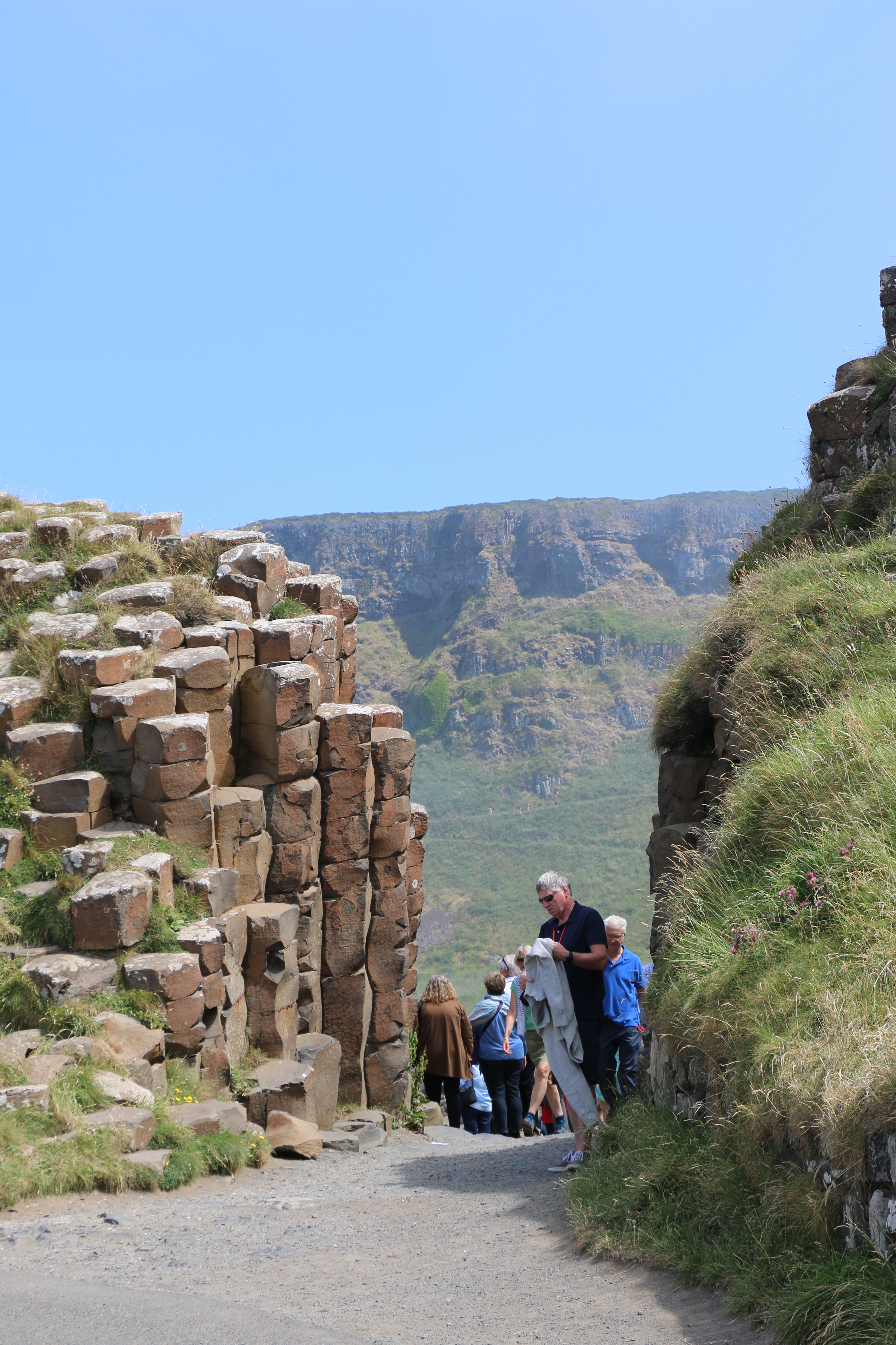 At the end of the taxi tour, our driver dropped us off at the Titanic Museum so we could meet up with our bus.  We had a few extra minutes to check out the gift shop and get some pictures.  Then, we all boarded the bus and headed off to Giant’s Causeway- a geological phenomenon.  Geologists say it was formed from the cooling and shrinking of successive lava flows over 60 million years ago.  But Giant’s Causeway is also steeped in myth and legend — carved from the coast by the mighty giant, Finn McCool, who left behind an ancient home full of folklore.  Local people believe that between the hexagons, the mythical features carved out in the rocks and the tumbling sea, there’s real magic!