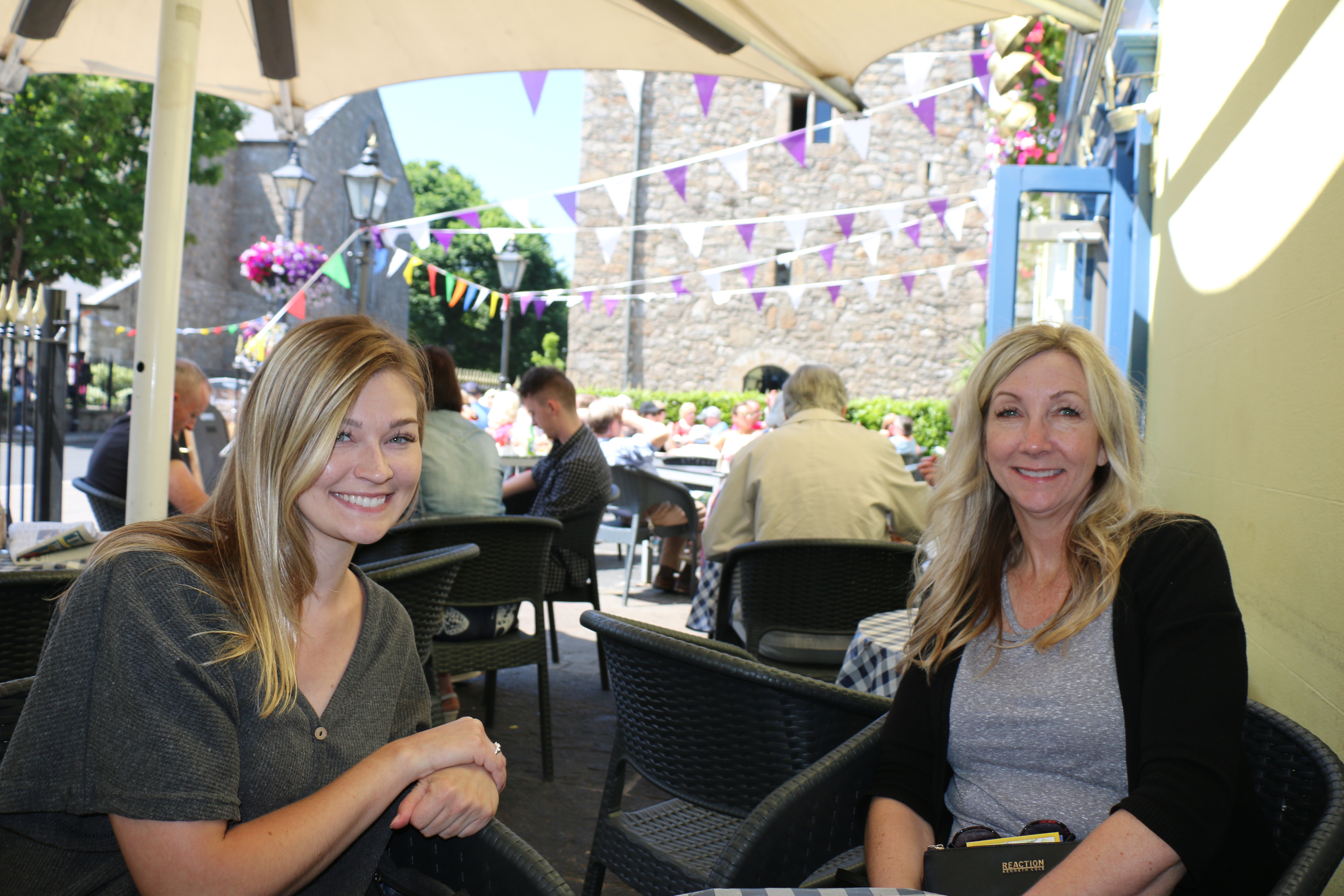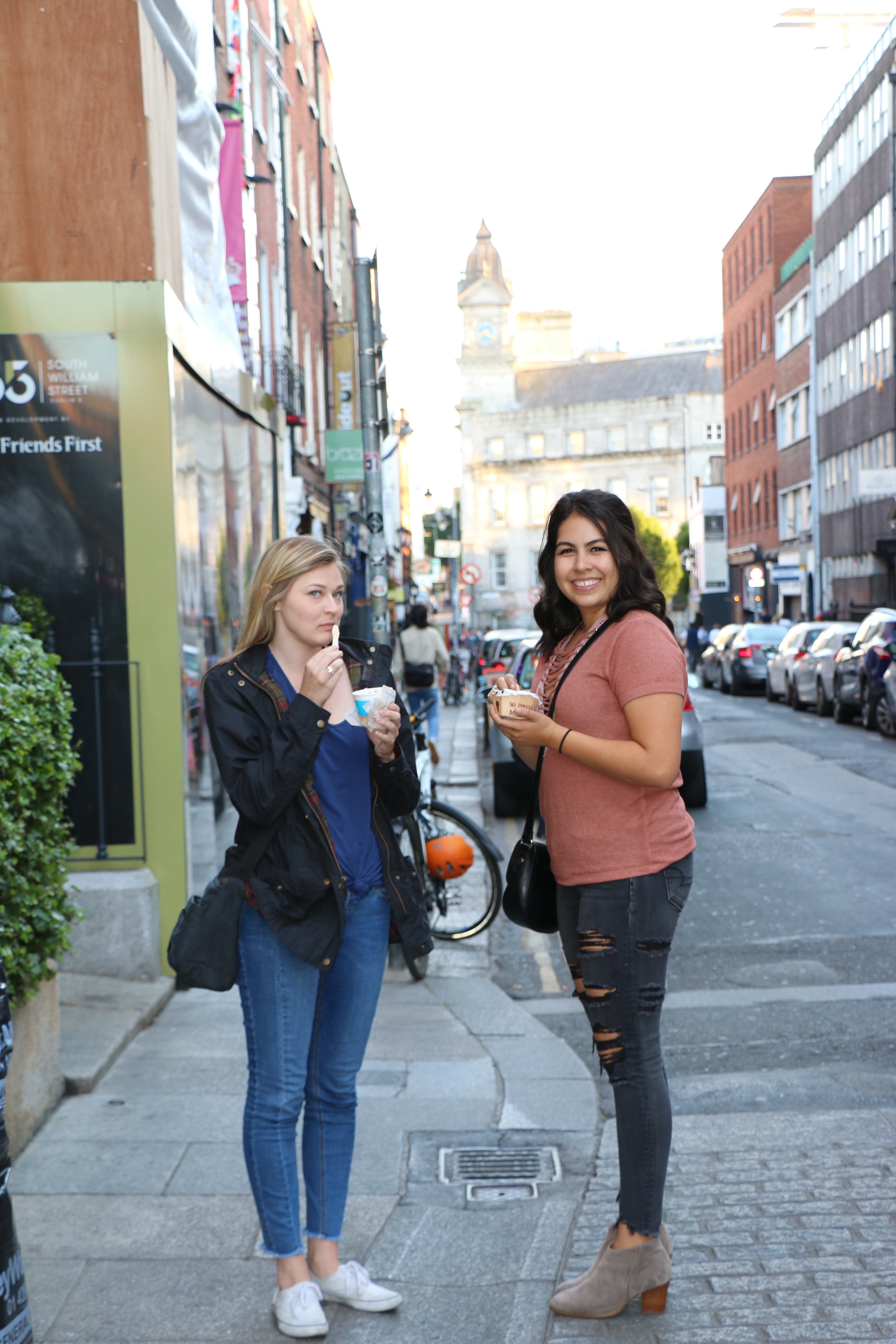 Kenzie, KarenAnn and Lexi in front of a cute Irish Cafe.