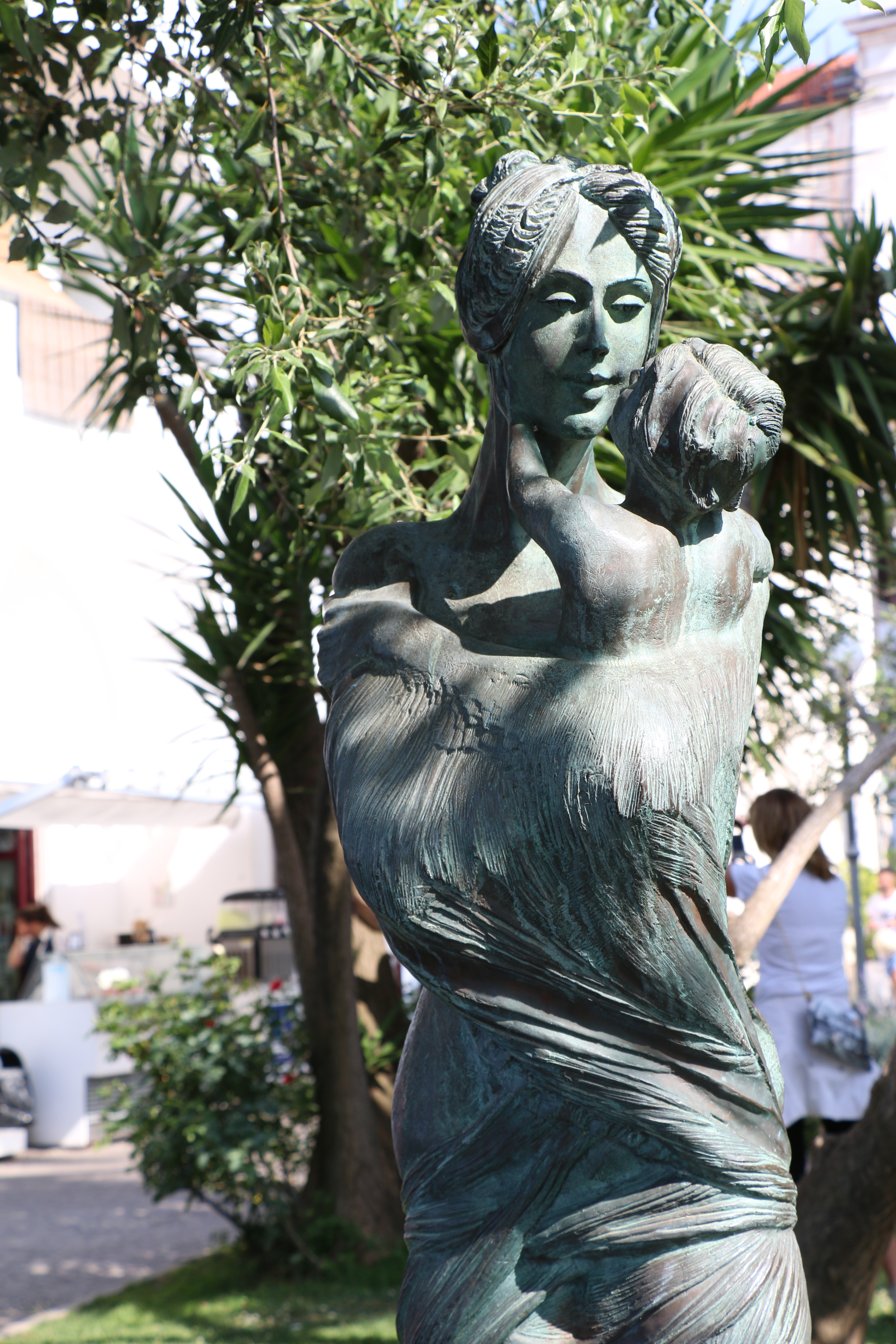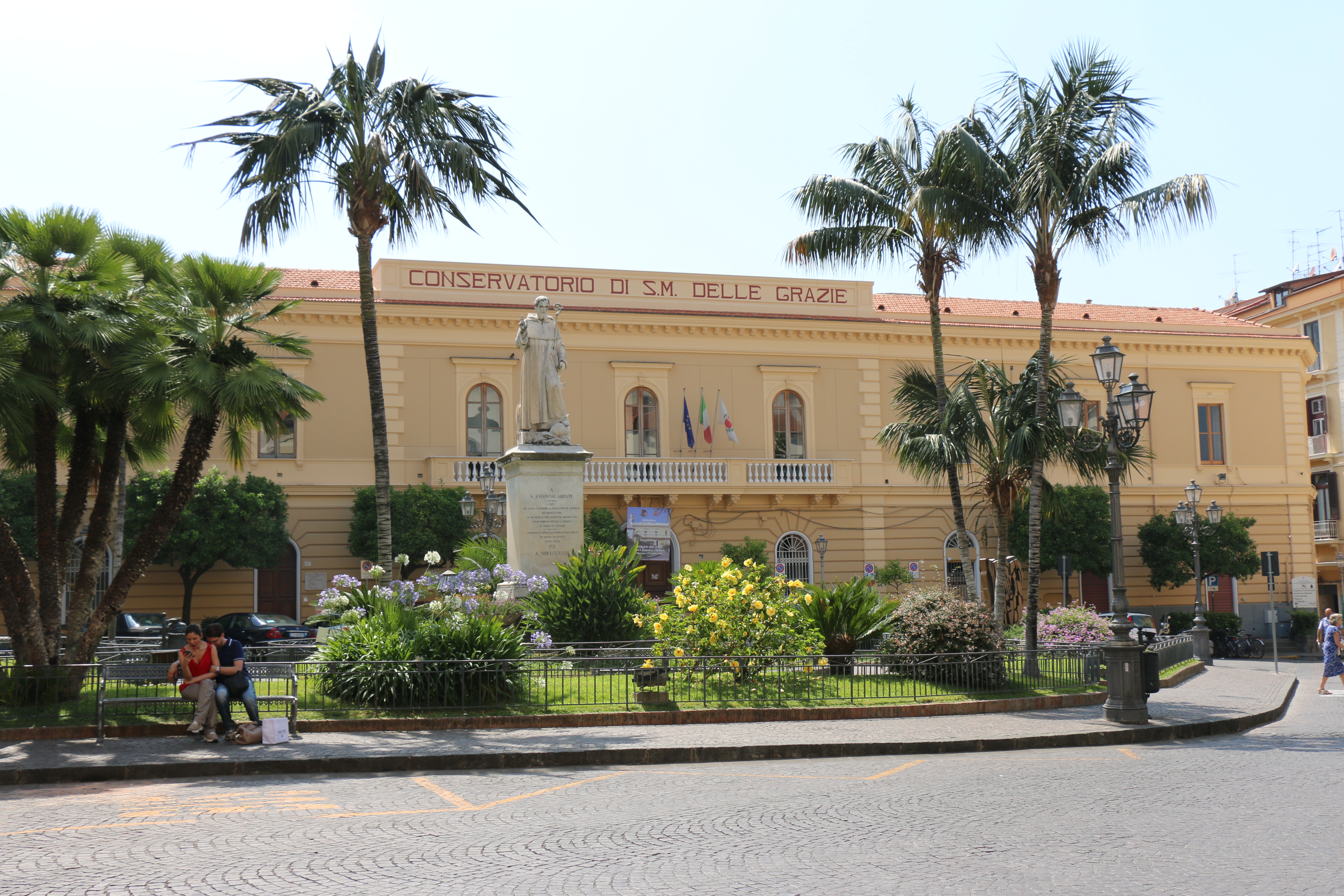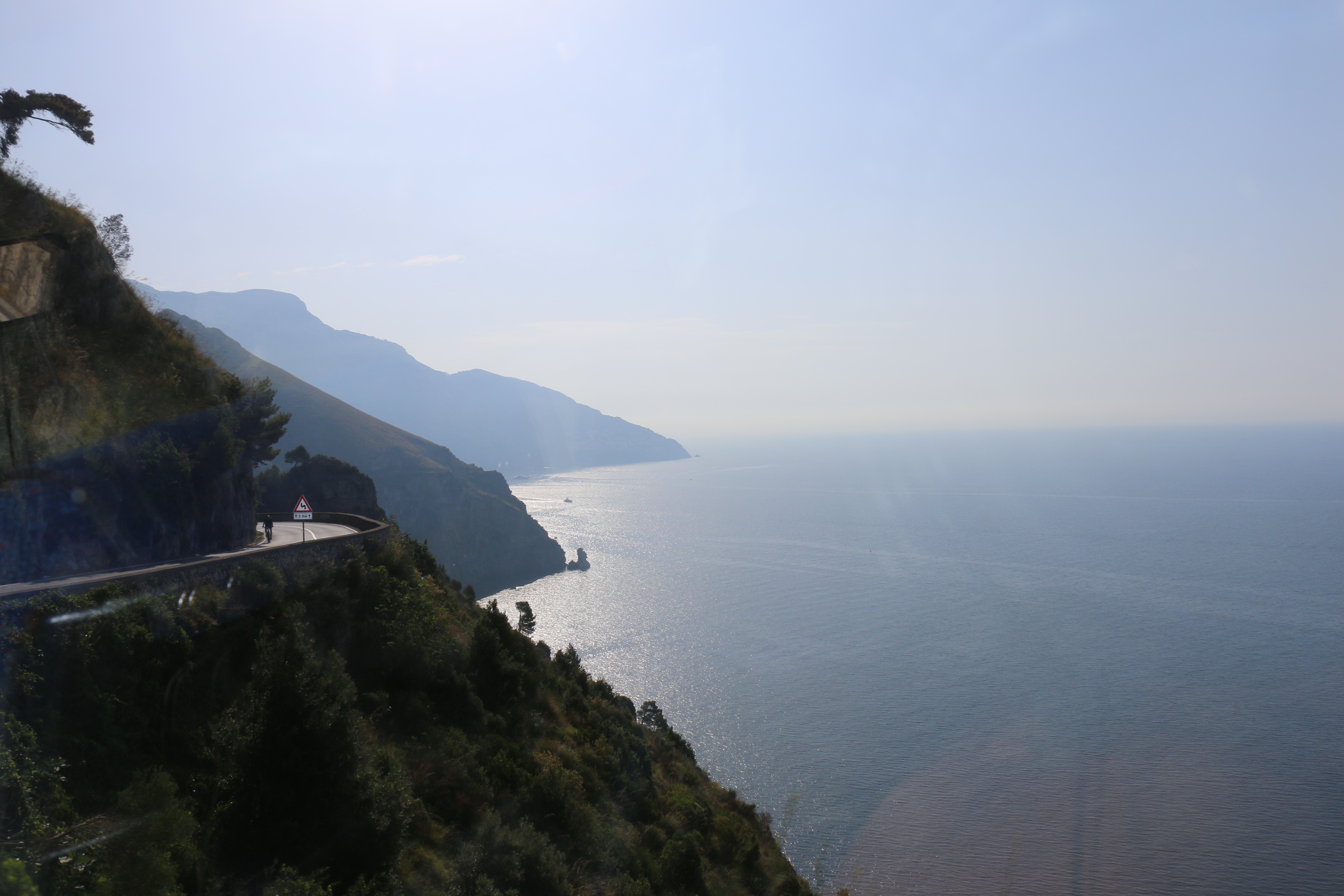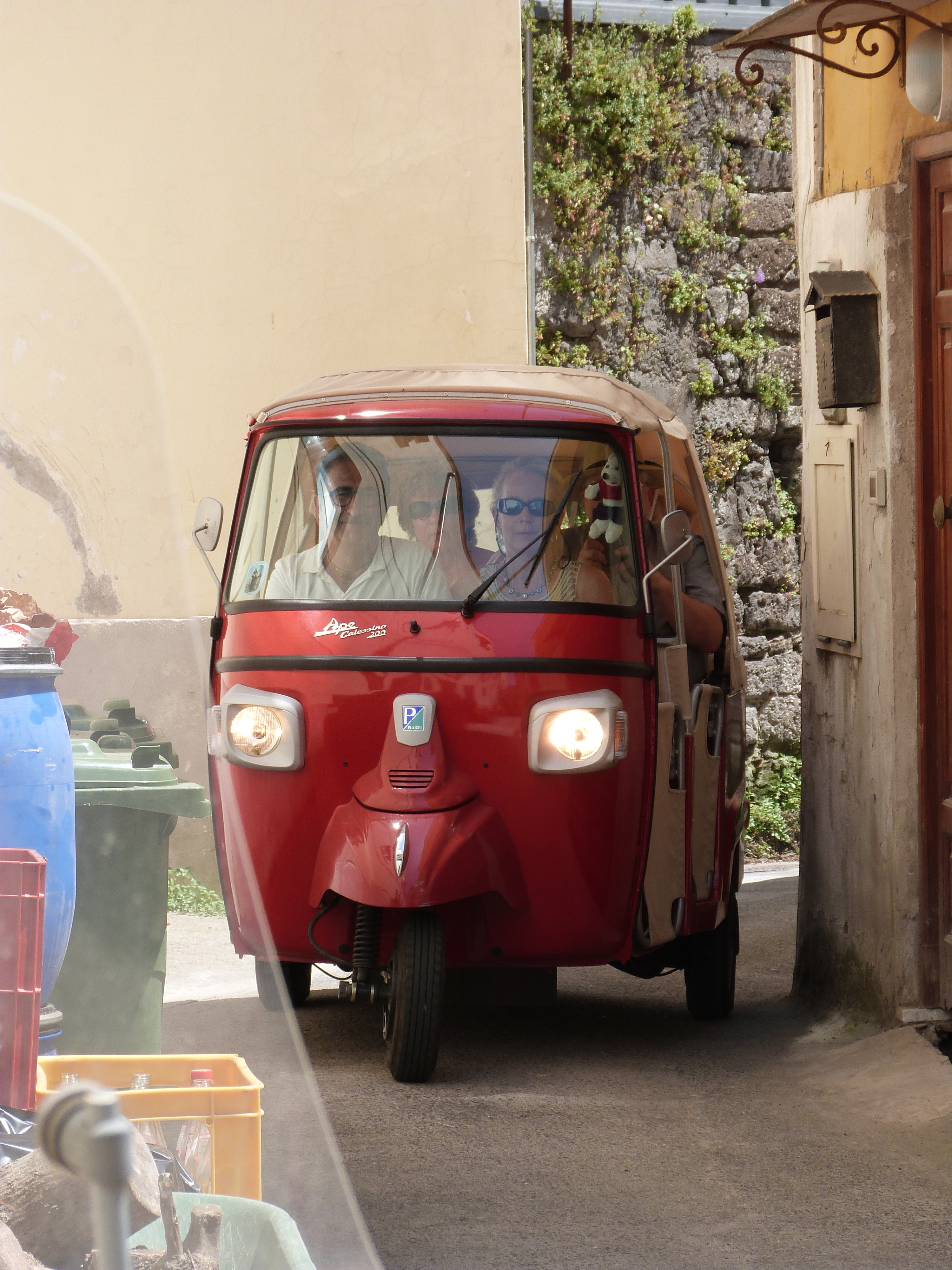Saturday, the four of us (Hailey’s classmate Holly, Hailey, Michael and I) headed out at 9 am to have a Sorrento “Farm Experience”. We arrived at the lemon and olive orchard and were met by our guide, Claudia. She walked us through the orchard, providing lots of good information about the trees, showing us some that were over 200 years old. They do not use irrigation and she explained that the trees can survive on very little water if you never give them too much. Last year they only had 7 days of rain, but the orchard is covered in lemons! We then tasted their limoncello and seven flavors of olive oil, accompanied by some wonderful fresh lemonade. Once we were done with that, we were picked up by scooter trucks! These are vespas that have a golf cart-like passenger hauler placed on them. We were taken to the Restaurant and the family who owns the restaurant explained how their Pizze is made. We donned aprons and rubber gloves and were each given a ball of dough to work into a 12″ Marguerite pizze with sauce, tomatoes, mozzarella cheese, and basil. It was really fun, they played Italian music and each person had to throw their dough to the person across from them. Yes, a couple were dropped on the floor. But they just grabbed another ball of dough and carried on! We had to do it in shifts, but since the pizze’s are cooked for only 2 minutes at 800 degrees, it didn’t take long! It was delicious. We were then taken, by the same scooter/carts to the barns, where we met the dairy cows and were schooled on how mozzarella, ricotta, and cacciottine cheese are made. Claudia made small tomato and basil salads to go with our 3 kinds of cheese sample! Home made red wine was Included with the pizza and cheese sampling! It was especially nice to learn that all their products (i.e., orchards, cows and food ingredients) are completely certified organic. While very informative and fun, it was a very humid hot day, so we were all exhausted when we got back. It has become increasing clear why the Italians take pausa pranzo (lunch pause) every day! We have adopted this practice with ease.