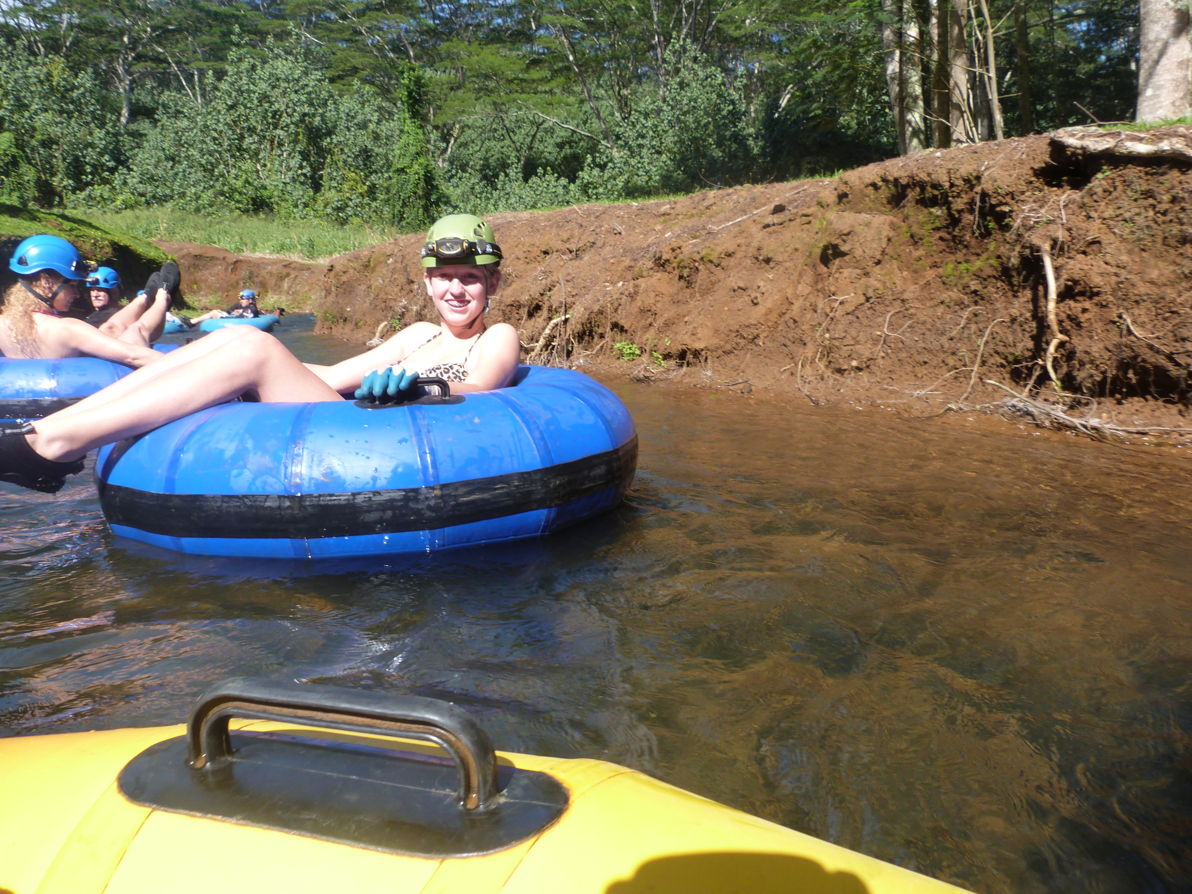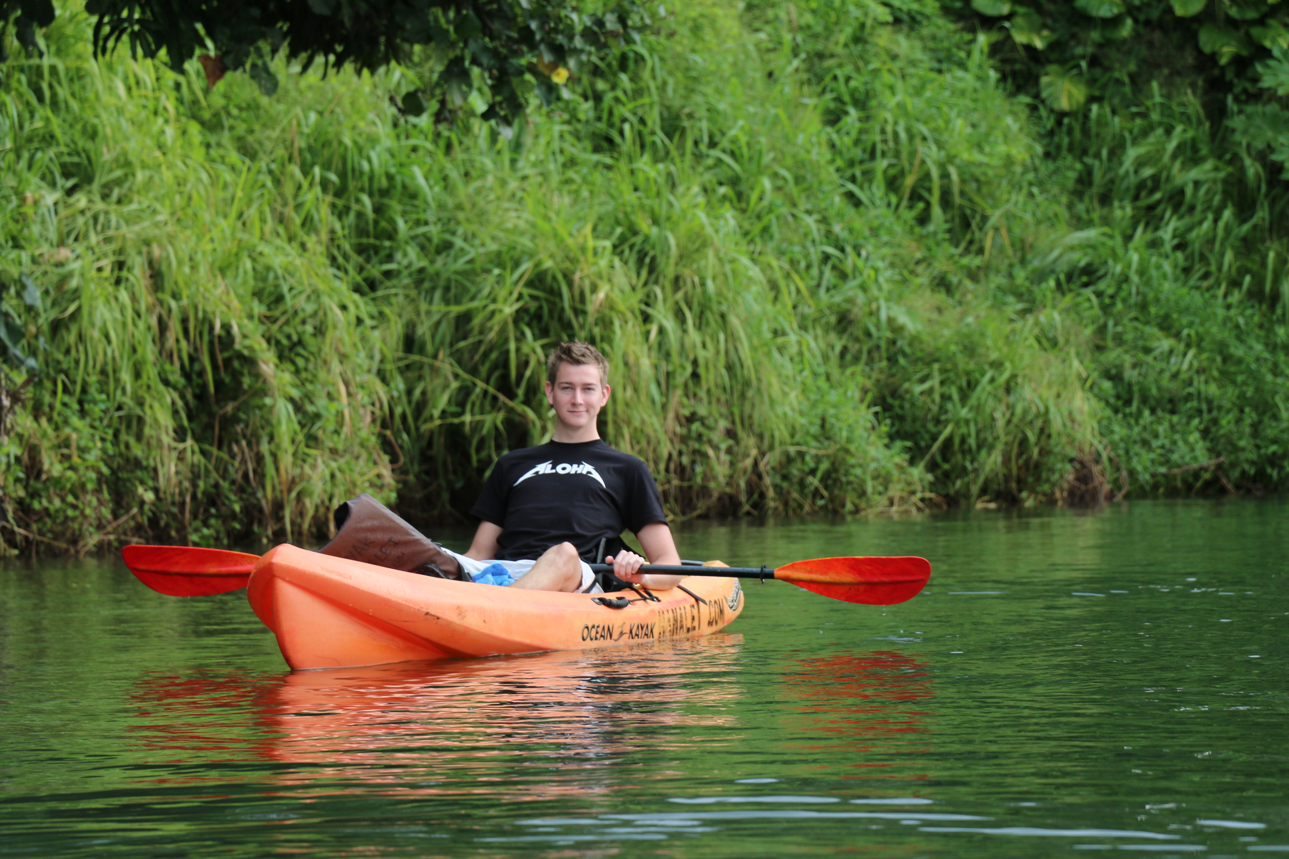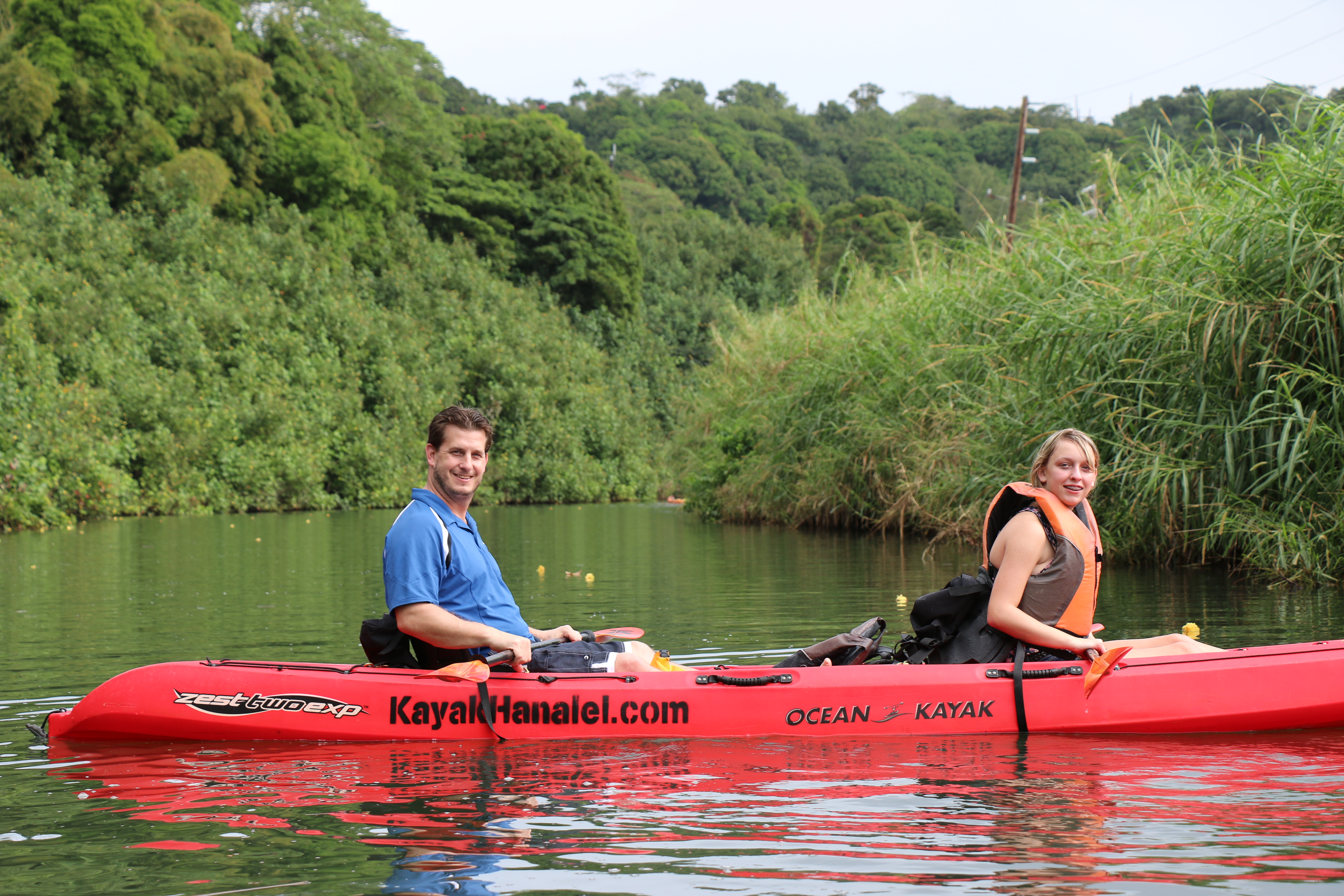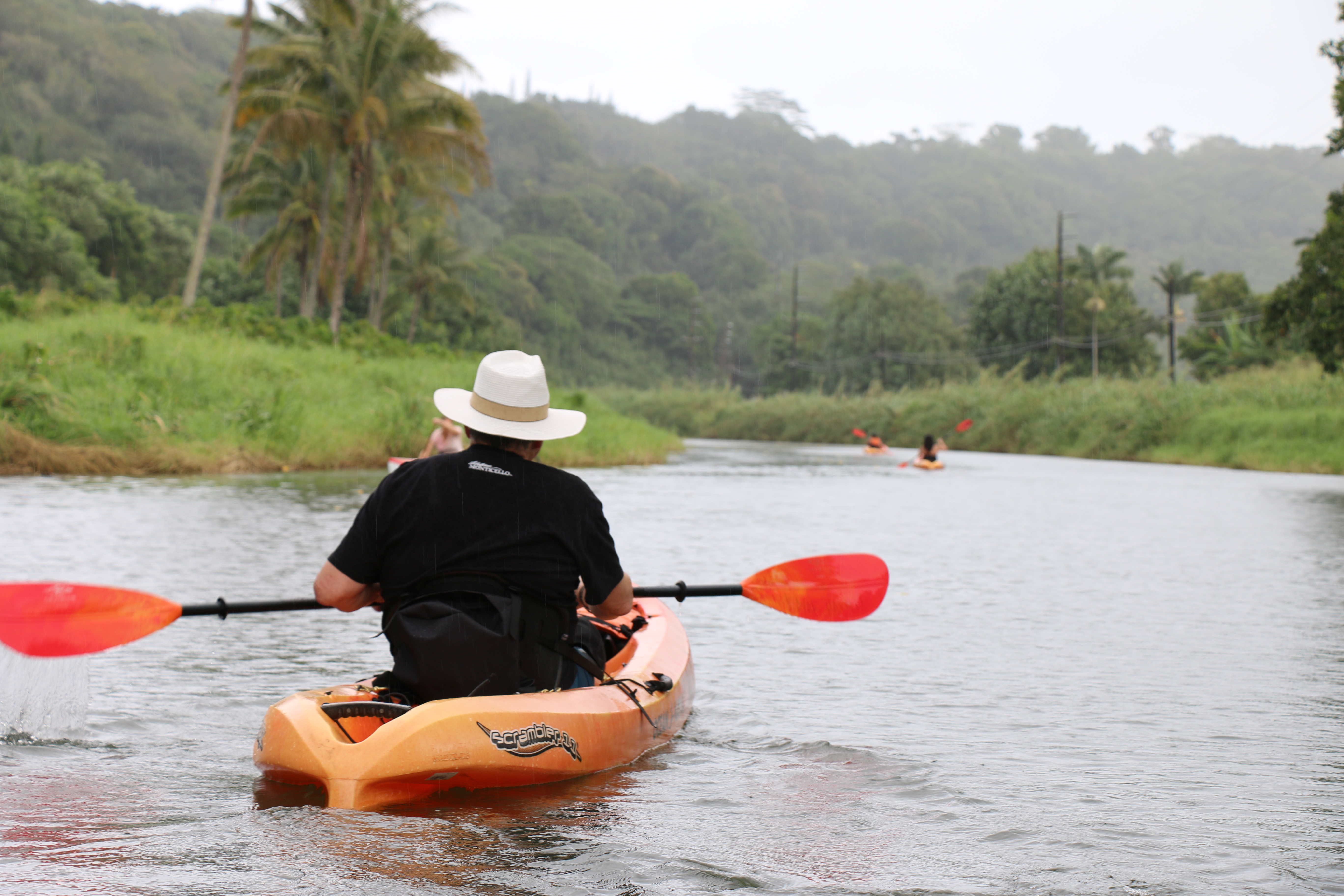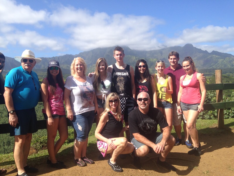 While we were gone, Jake drove all the kids to Kapaa to get dinner at the Noodle House – unfortunately, it was closed. So, they drove all the way back north to Hanalei to the pizza parlor. They got there at 7:30 and the pizza parlor stopped making pizza at 7 — Bad timing! But, wait, the men in the back were talking and it turned out that someone called in an order for 2 pizzas, but he had not picked them up. Would the kids be interested in taking these two pizzas for the price of one? Needless to say, the answer was YES! So they headed back to the house with their pizzas and Jake was walking over the entry steps (which cover the Koi pond and have inch-wide spaces between the steps) when he dropped the house keys in the pond! This is not a shallow pond we’re talking about. It is about 3 feet deep. Fortunately, one of the many sliding doors was left unlocked, so they got into the house and found some extra long tongs in the kitchen. With Jake stretched out on the steps and using the tongs, he was able to reach the keys! It was like an episode of Modern Family!