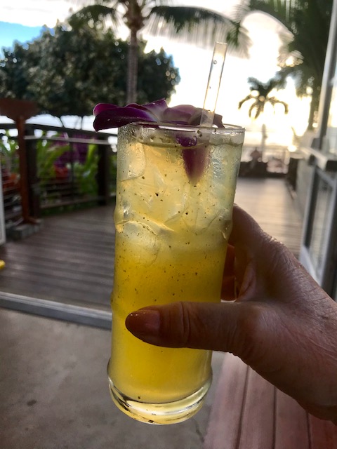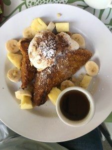 When it came time to snorkel, I was so uncomfortable with my hip hurting, I decided I would go back to shore and wait while Michael, Peter, and Mary snorkeled. (To be honest, this would also avoid the embarrassment of not being able to get back into the kayak once I got out.) Lucky for me, Mary had just started feeling seasick and Peter’s back was getting worse, so the whole group decided to return to shore a little early. Is it bad to be happy your friends are as miserable as you? By then we were tired and quite hungry and headed to the breakfast place Michael and I and our family group had gone to in June of 2017 when we were all here. It’s called Nalu’s and is just a wonderful little breakfast place with the very best food. By the way, Nalu means surf.