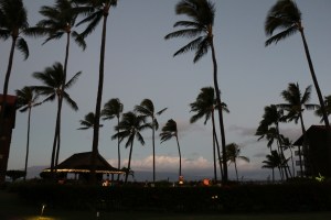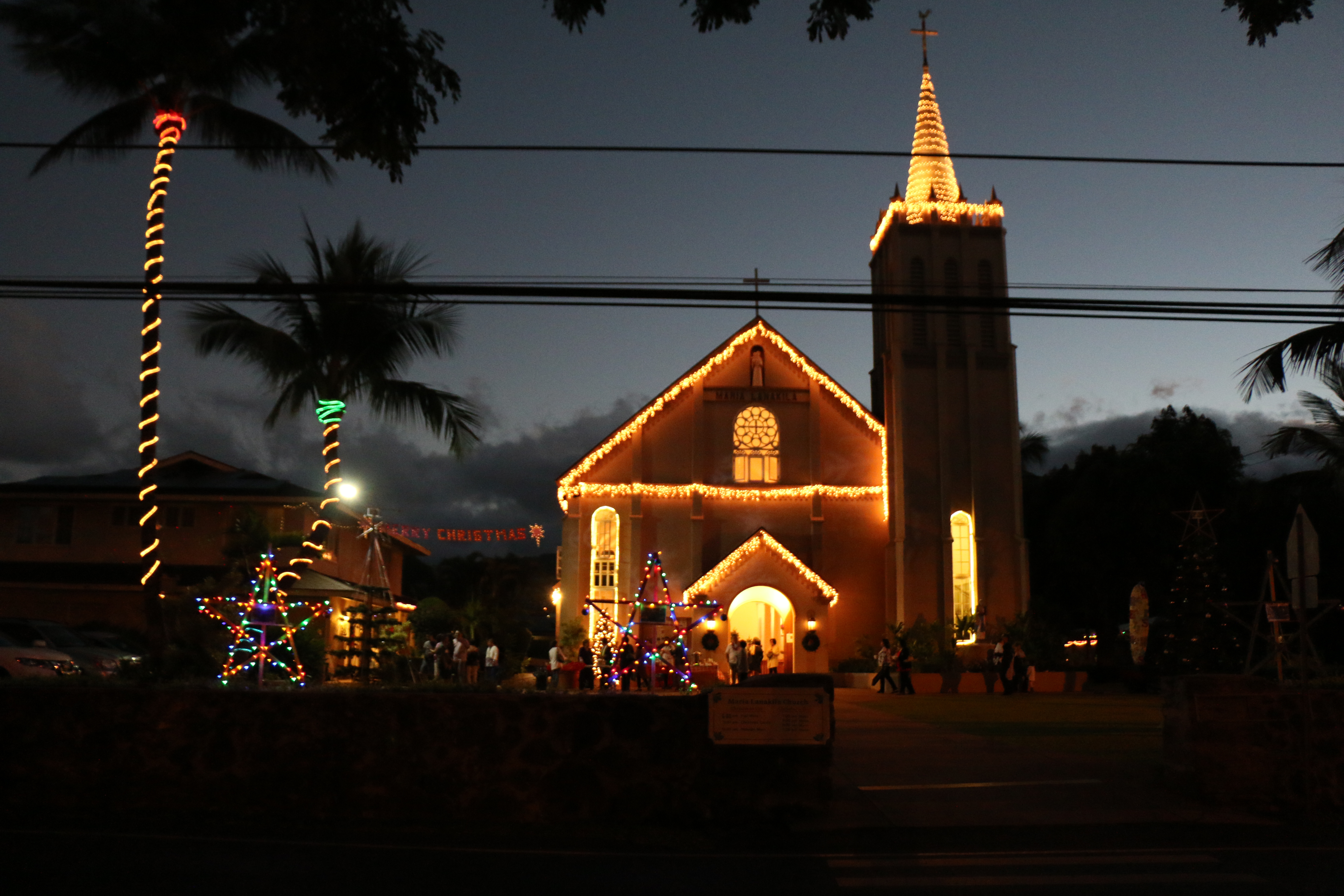 It was a dark Sunday morning. This church, across from where we parked in Lahaina, was decorated for Christmas and having early service.