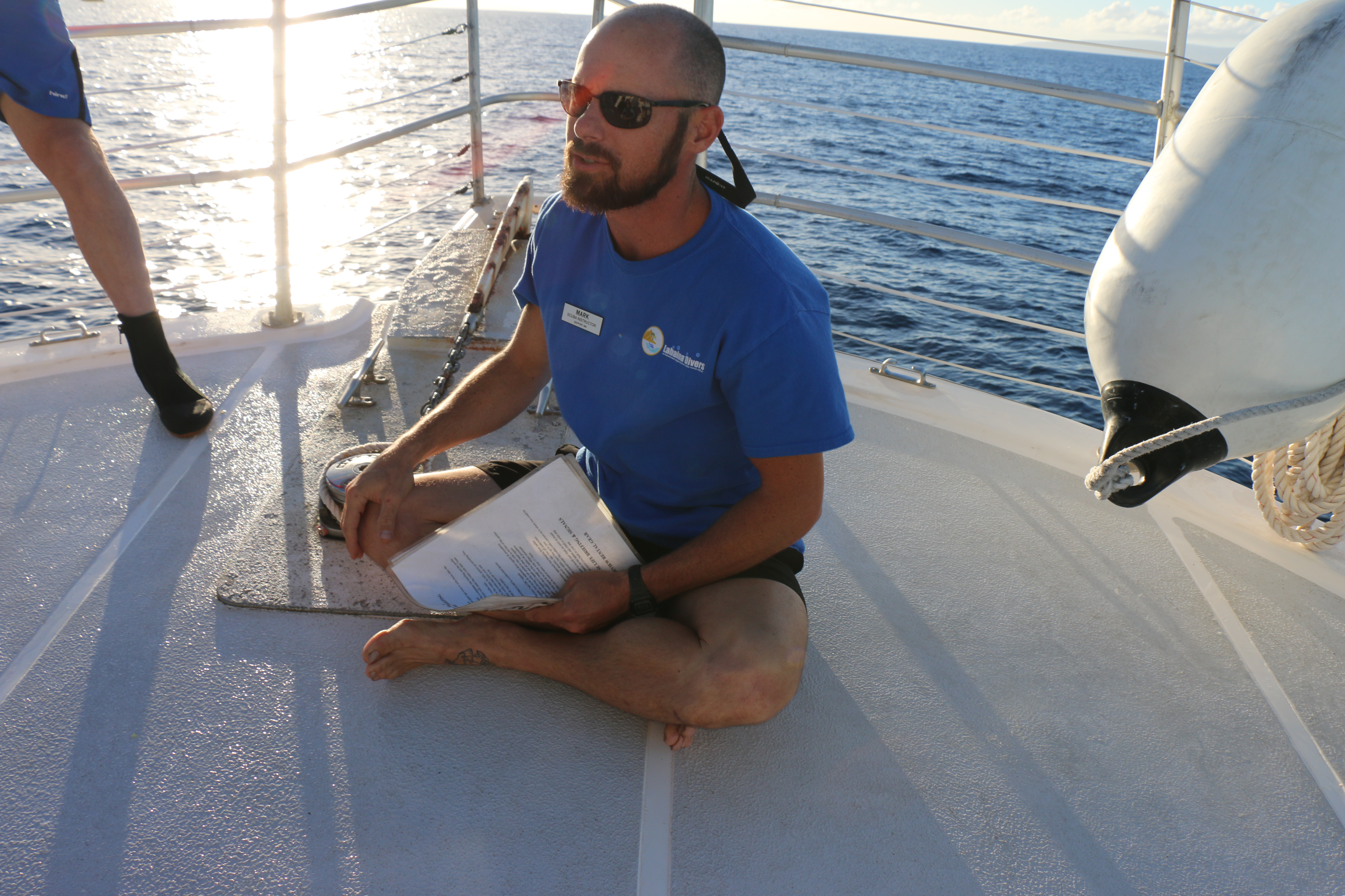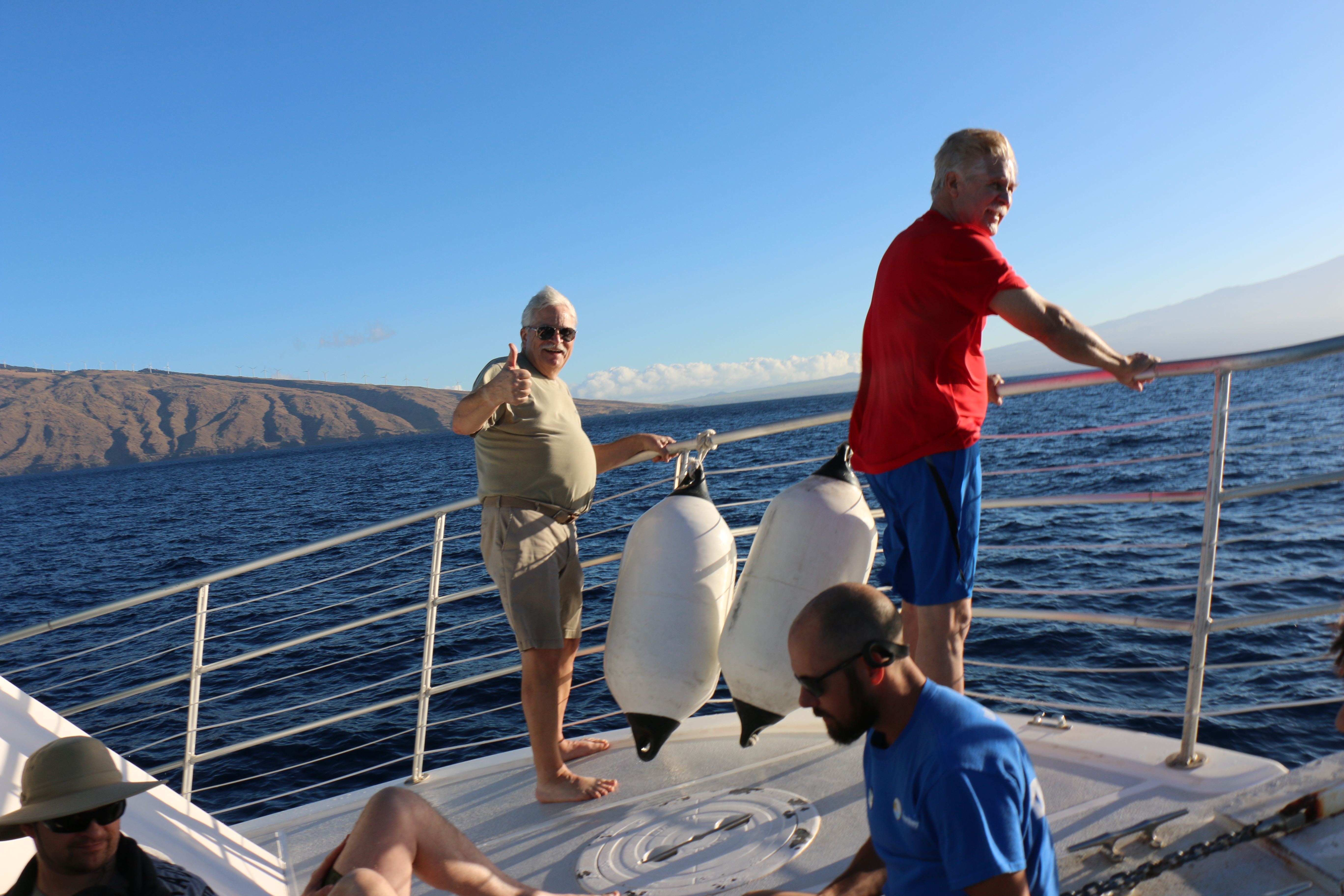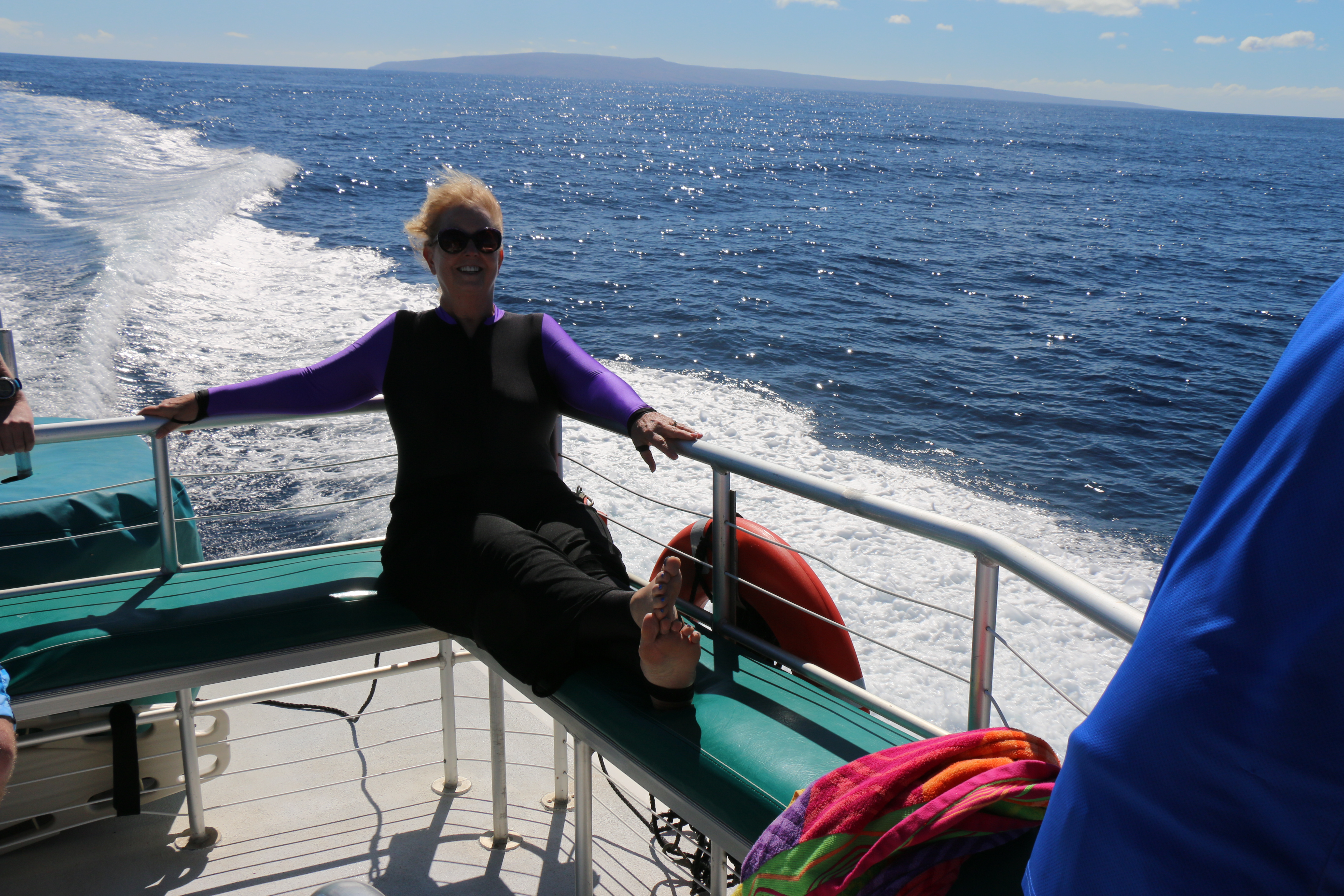 After the dives, I relax on the upper deck, heading back to Lahaina.