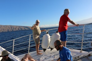 Michael and Peter at the bow heading to Molokini.